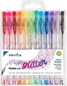 Le penne glitter sono penne a gel riempite con inchiostro contenente particelle scintillanti che danno un effetto luminoso e riflettente una volta applicato sulla carta. A differenza delle penne tradizionali, l’inchiostro non è solo pigmentato: incorpora microbrillanti che creano riflessi argentati o colorati a seconda della tonalità scelta. La punta è solitamente fine, attorno a 1 mm, per consentire tratti definiti e dettagli precisi; questo le rende adatte sia alla scrittura decorativa sia al disegno dettagliato.